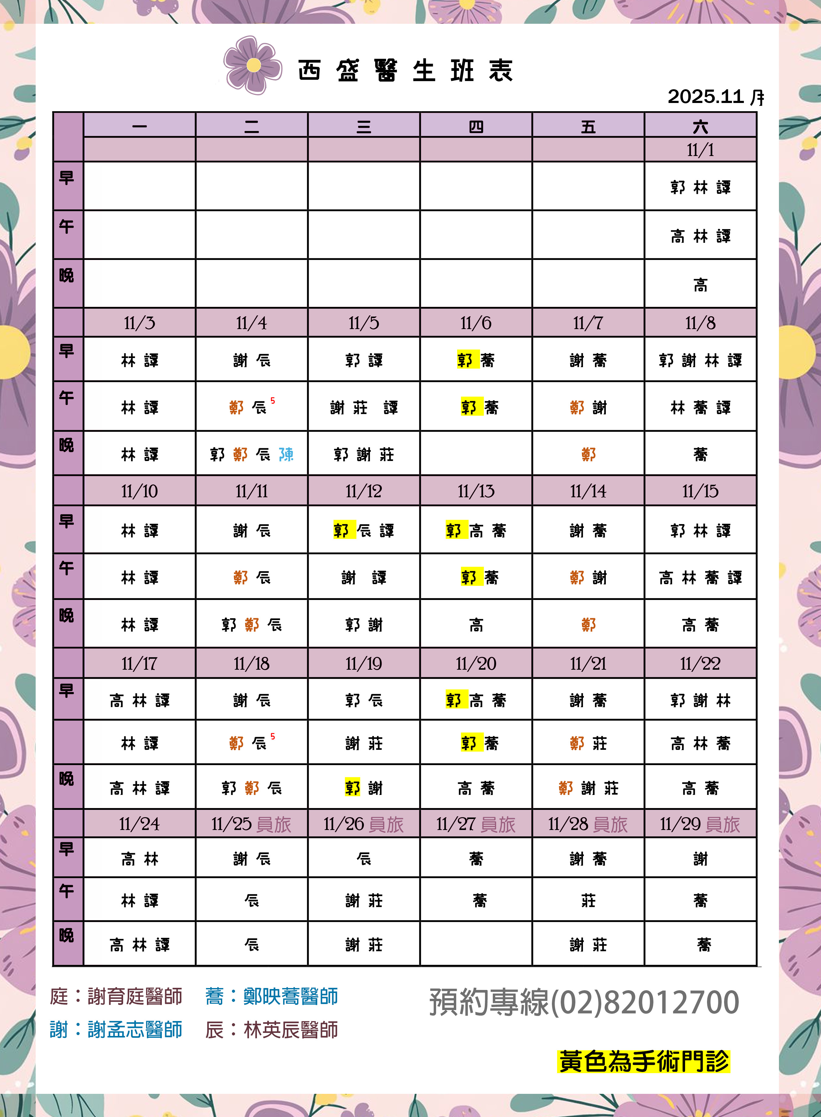 2025-10-20 114年11月醫生班表出爐了喔!趕快來電預約!