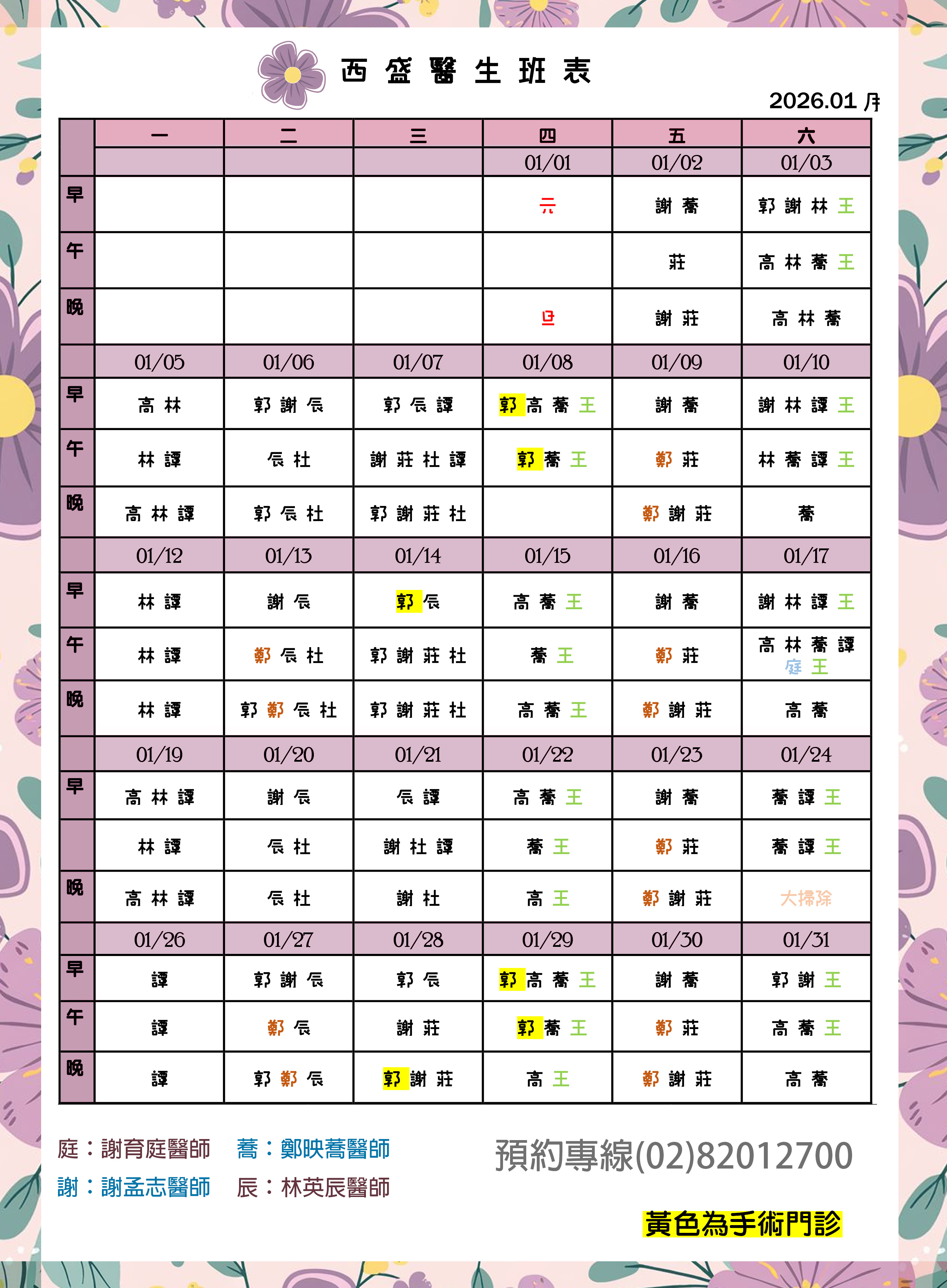 2025-12-22 <新的一年>115年01月醫生班表出爐了喔!趕快來電預約!