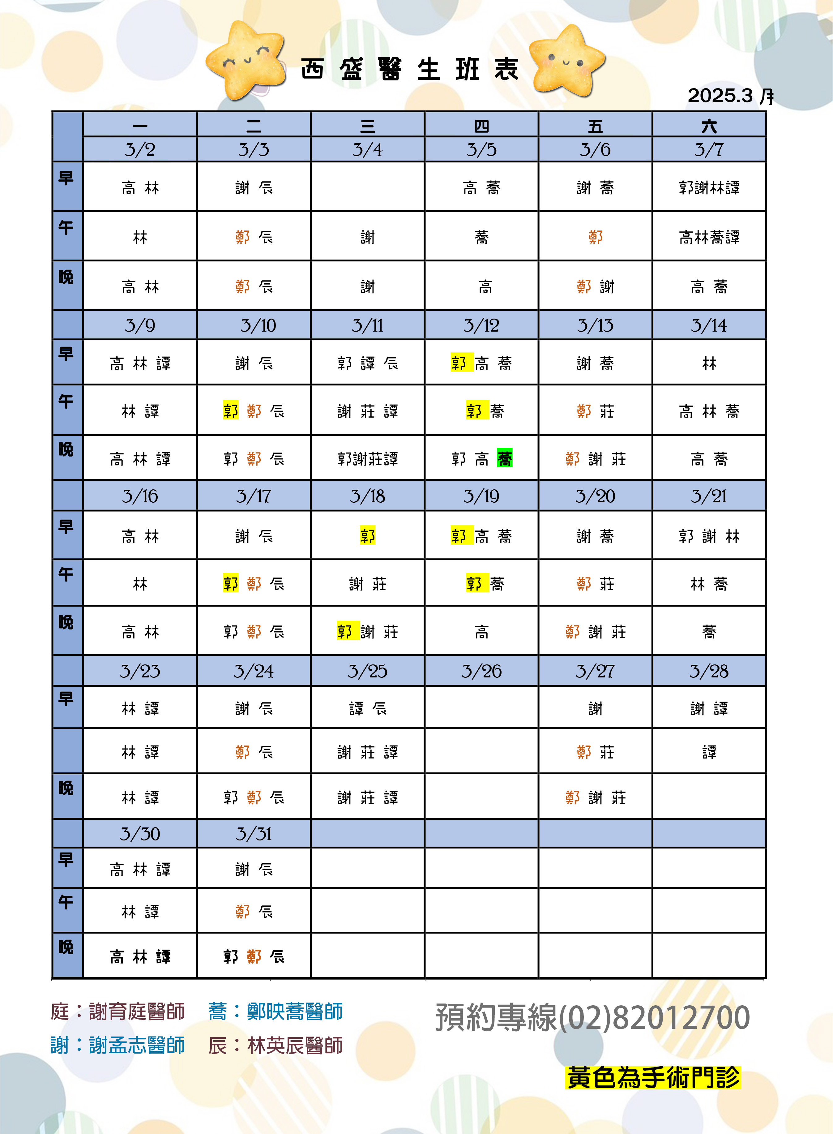 2026-02-24 115年03月醫生班表出爐了喔!趕快來電預約!